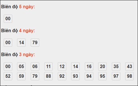 Đuôi 2: 18 ngày, Đuôi 1: 7 ngày, Đuôi 8: 6 ngày, Đuôi 0: 3 ngày, Đuôi 7: 3 ngày