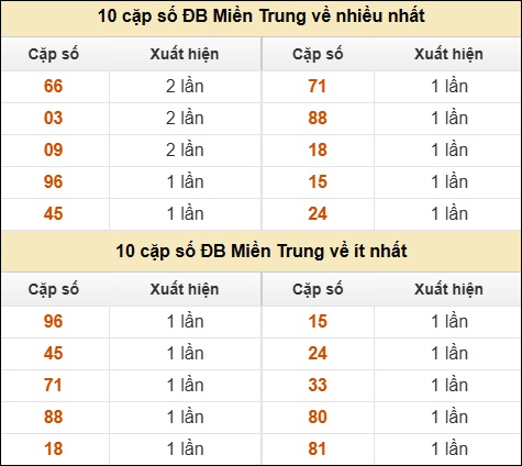 ⚡ 10 cặp số ĐB XSMT về nhiều nhất/ ít nhất tính dến ngày 11/08/2025: