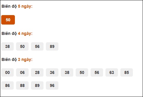 Đuôi 9: 22 ngày, Đuôi 4: 12 ngày, Đuôi 5: 4 ngày, Đuôi 6: 3 ngày, Đuôi 4: 3 ngày