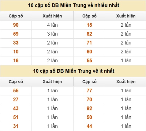 ⚡ 10 cặp số ĐB XSMT về nhiều nhất/ ít nhất tính đến ngày 11/9/2025: