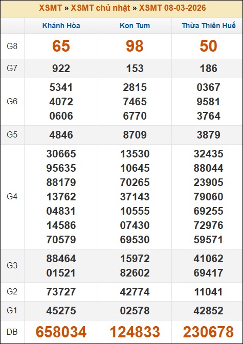 Bình luận kết quả kỳ quay trước, từ đó đưa ra nhận định kết quả XSMT hôm nay 15/3 gồm 3 tỉnh: Khánh Hòa, Kon Tum, Thừa Thiên Huế.