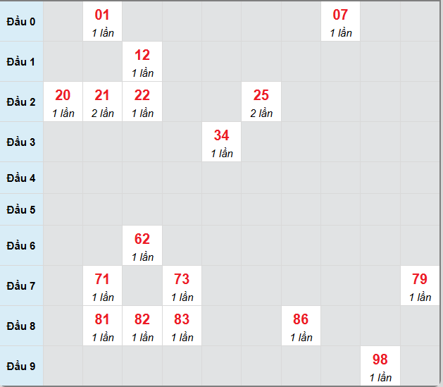 Thống kê cầu hôm nay giúp người chơi có thêm dữ liệu khi phân tích và dự đoán kỳ này được chính xác hơn. Trước khi đến với thống kê, mời các bạn theo dõi lại bảng kết quả kỳ trước để có cái nhìn bao quát hơn về vị trí các con số đã xuất hiện
