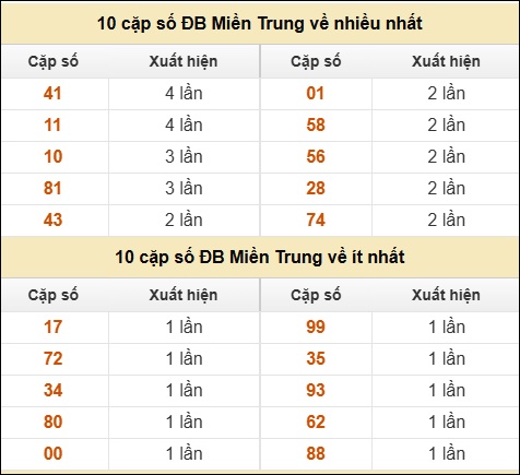 ⚡ 10 cặp số ĐB XSMT về nhiều nhất/ ít nhất tính dến ngày 16/11/2025:
