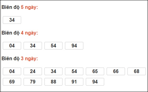 Đuôi 3: 9 ngày, Đuôi 8: 5 ngày, Đuôi 5: 4 ngày, Đuôi 2: 3 ngày, Đuôi 7: 2 ngày