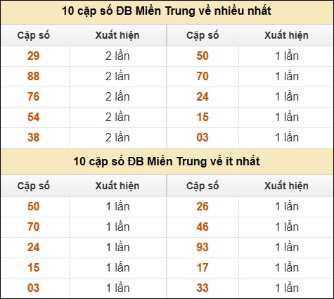 ⚡ 10 cặp số ĐB XSMT về nhiều nhất/ ít nhất tính dến ngày 18/11/2025: