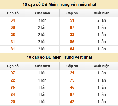 ⚡ 10 cặp số ĐB XSMT về nhiều nhất/ ít nhất tính dến ngày 19/11/2025: