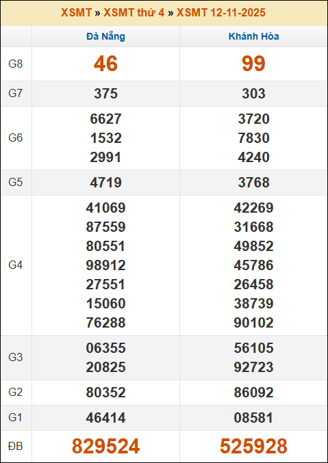 Kết quả xổ số Miền Trung 12/11/2025 thứ 4 tuần trước