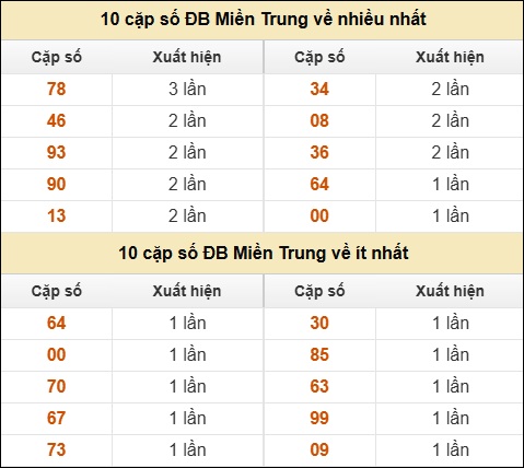 ⚡ 10 cặp số ĐB XSMT về nhiều nhất/ ít nhất tính dến ngày 19/12/2025: