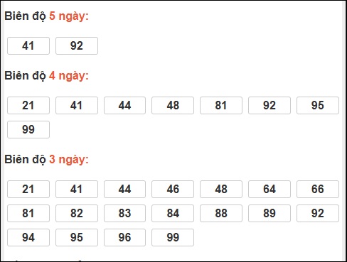 Đuôi 3: 16 ngày, Đuôi 6: 6 ngày, Đuôi 2: 5 ngày, Đuôi 4: 4 ngày, Đuôi 9: 3 ngày