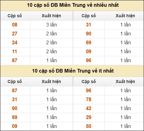 ⚡ 10 cặp số ĐB XSMT về nhiều nhất/ ít nhất tính dến ngày 19/08/2025: