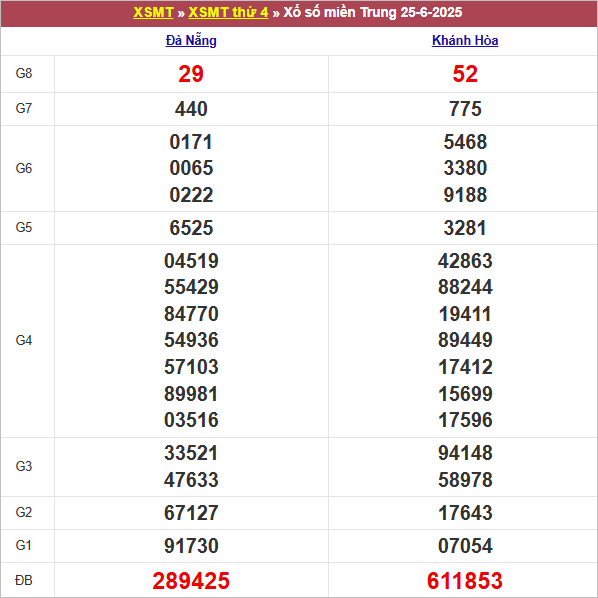 Xem lại kết quả xổ số miền Trung thứ 4 tuần trước 25/6/2025