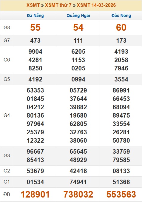 Kết quả xổ số Miền Trung 14/03/2026 thứ 7 tuần trước