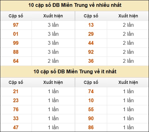 ⚡ 10 cặp số ĐB XSMT về nhiều nhất/ ít nhất tính dến ngày 21/03/2026: