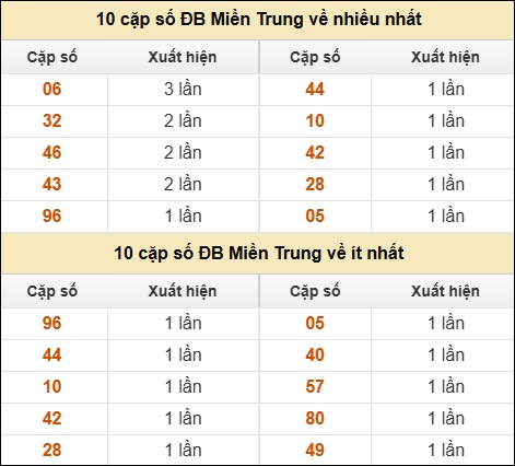 ⚡ 10 cặp số ĐB XSMT về nhiều nhất/ ít nhất tính dến ngày 22/8/2025:
