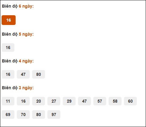 Đầu 1: 18 ngày, Đầu 9: 6 ngày, Đầu 7: 5 ngày, Đầu 0: 4 ngày, Đầu 5: 4 ngày