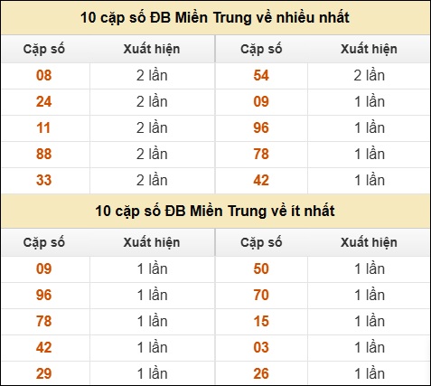 ⚡ 10 cặp số ĐB XSMT về nhiều nhất/ ít nhất tính dến ngày 23/09/2025: