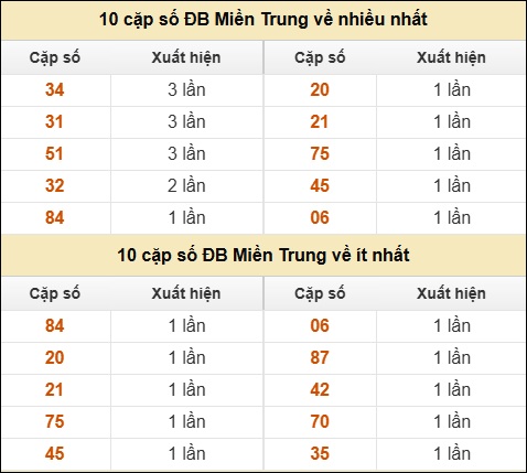 ⚡ 10 cặp số ĐB XSMT về nhiều nhất/ ít nhất tính dến ngày 24/12/2025: