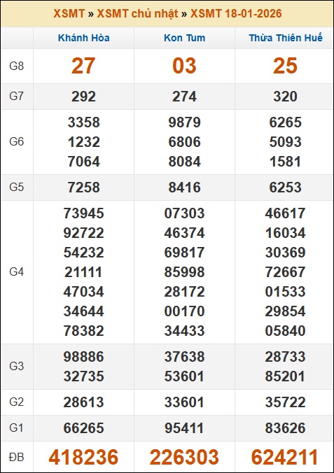 1. ✔️ Xem lại KQXSMT Chủ nhật tuần trước 18/01/2026