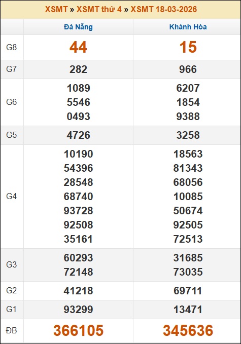 Kết quả xổ số Miền Trung 18/03/2026 thứ 4 tuần trước
