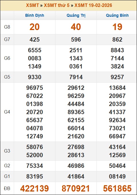 Kết quả xổ số Miền Trung 19/02/2026 thứ 5 tuần trước