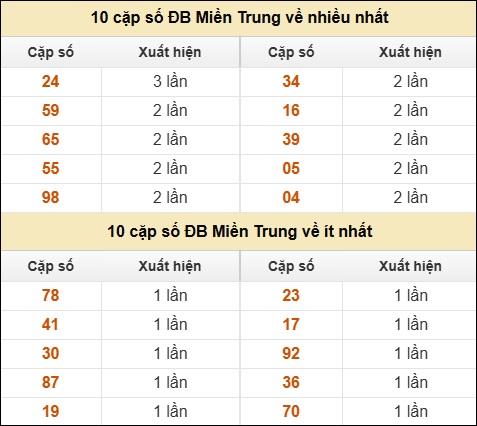 Chuyên mục thống kê XSMT thứ 5 ngày 26/02/2026 đưa ra những số liệu quan trọng bao gồm: loto gan MT lâu chưa về, 10 cặp số ĐB Miền Trung về nhiều/ ít nhất, đầu - đuôi số đặc biệt lâu chưa xuất hiện. Từ đó, giúp bạn phán đoán lô tô 3 đài kết quả xổ số miền Trung 26/2.