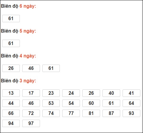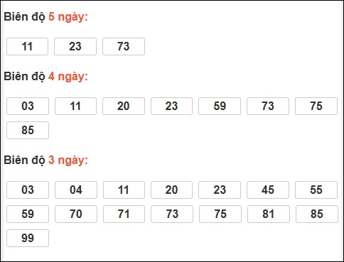 Đuôi 3: 13 ngày, Đuôi 7: 12 ngày, Đuôi 6: 3 ngày, Đuôi 2: 2 ngày, Đuôi 0: 1 ngày