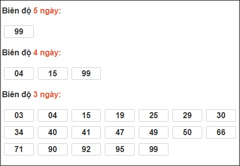 Đuôi 4: 9 ngày, Đuôi 5: 5 ngày, Đuôi 7: 3 ngày, Đuôi 9: 3 ngày, Đuôi 0: 2 ngày