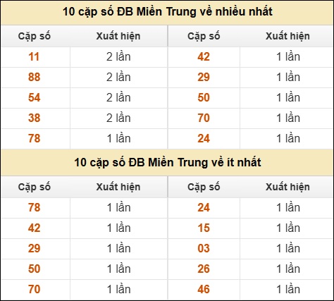 ⚡ 10 cặp số ĐB XSMT về nhiều nhất/ ít nhất tính dến ngày 28/10/2025: