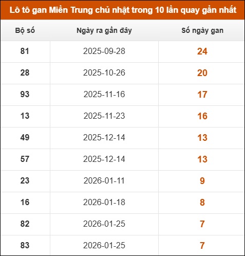 Lô tô gan Miền Trung chủ nhật trong 10 lần quay gần nhất