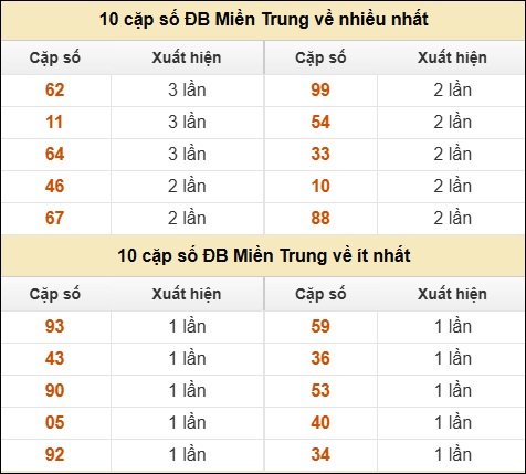 ⚡ 10 cặp số ĐB XSMT về nhiều nhất/ ít nhất tính dến ngày 29/03/2026: