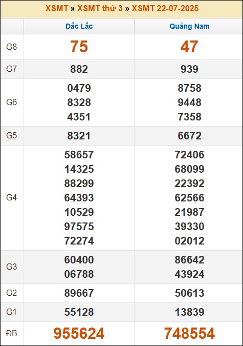 Kết quả xổ số Miền Trung 22/07/2025 thứ 3 tuần trước
