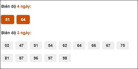 Đuôi 5: 8 ngày, Đuôi 6: 8 ngày, Đuôi 1: 6 ngày, Đuôi 8: 4 ngày, Đuôi 2: 3 ngày