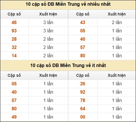 ⚡ 10 cặp số ĐB XSMT về nhiều nhất/ ít nhất tính dến ngày 3/10/2025: