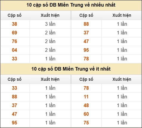 ⚡ 10 cặp số ĐB XSMT về nhiều nhất/ ít nhất tính dến ngày 03/02/2026: