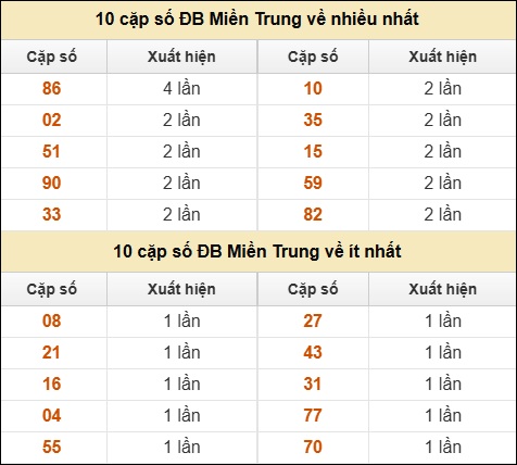 ⚡ 10 cặp số ĐB XSMT về nhiều nhất/ ít nhất tính đến ngày 31/7/2025: