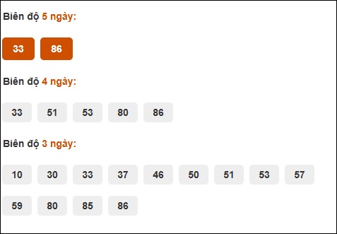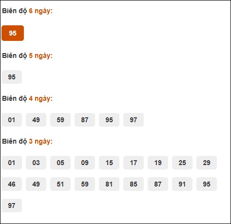 Đuôi 8: 17 ngày, Đuôi 5: 9 ngày, Đuôi 3: 6 ngày, Đuôi 6: 5 ngày, Đuôi 2: 3 ngày