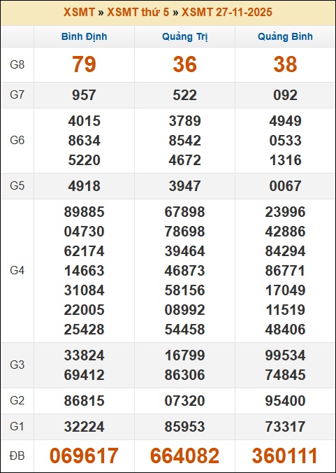 Kết quả xổ số Miền Trung 27/11/2025 thứ 5 tuần trước