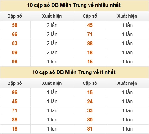 ⚡ 10 cặp số ĐB XSMT về nhiều nhất/ ít nhất tính dến ngày 04/08/2025: