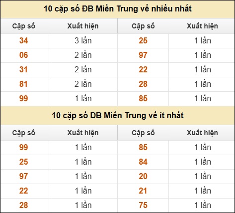 ⚡ 10 cặp số ĐB XSMT về nhiều nhất/ ít nhất tính dến ngày 05/11/2025:
