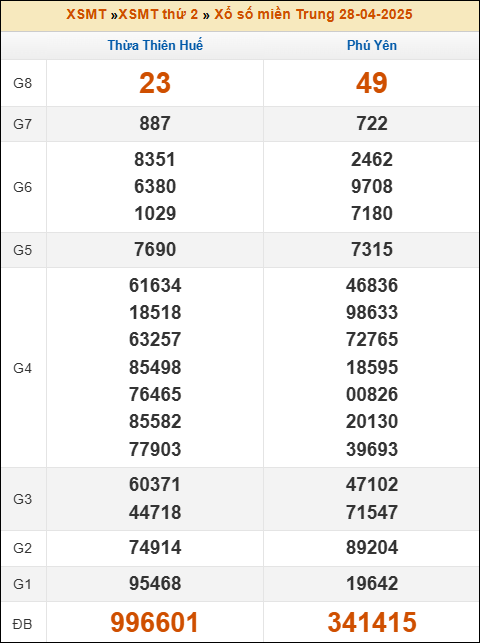 Bảng kết quả kỳ trước 28/4/2025