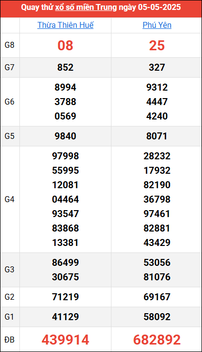 Quay thử kết quả miền Trung ngày 5/5/2025