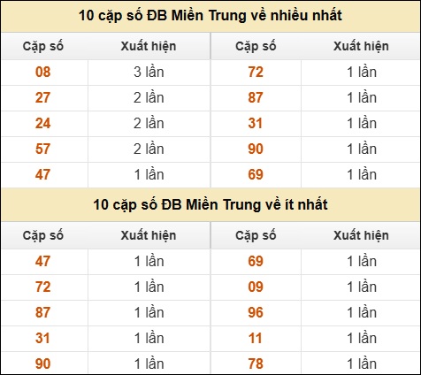 ⚡ 10 cặp số ĐB XSMT về nhiều nhất/ ít nhất tính dến ngày 05/08/2025: