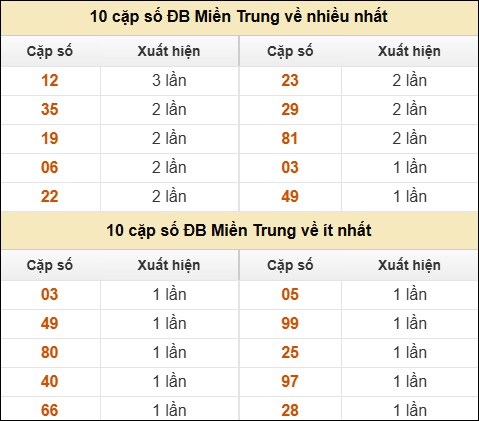⚡ 10 cặp số ĐB XSMT về nhiều nhất/ ít nhất tính dến ngày 6/8/2025:
