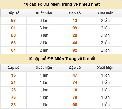 ⚡ 10 cặp số ĐB XSMT về nhiều nhất/ ít nhất tính dến ngày 07/03/2026: