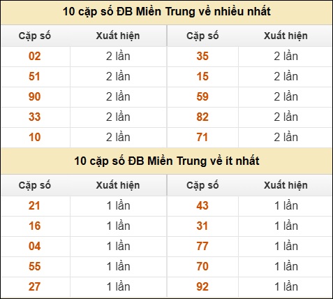 ⚡ 10 cặp số ĐB XSMT về nhiều nhất/ ít nhất tính đến ngày 7/8/2025: