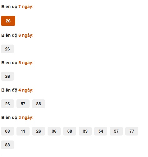 Đuôi 8: 18 ngày, Đuôi 5: 10 ngày, Đuôi 3: 7 ngày, Đuôi 6: 6 ngày, Đuôi 9: 3 ngày