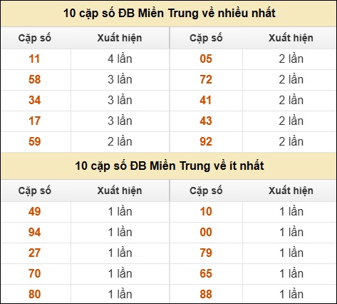 ⚡ 10 cặp số ĐB XSMT về nhiều nhất/ ít nhất tính dến ngày 07/09/2025: