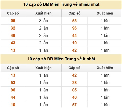 ⚡ 10 cặp số ĐB XSMT về nhiều nhất/ ít nhất tính dến ngày 8/8/2025: