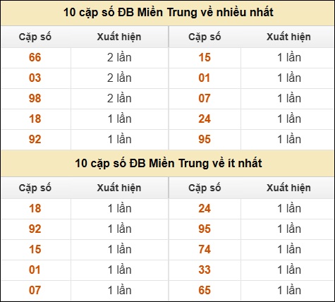 ⚡ 10 cặp số ĐB XSMT về nhiều nhất/ ít nhất tính dến ngày 08/09/2025: