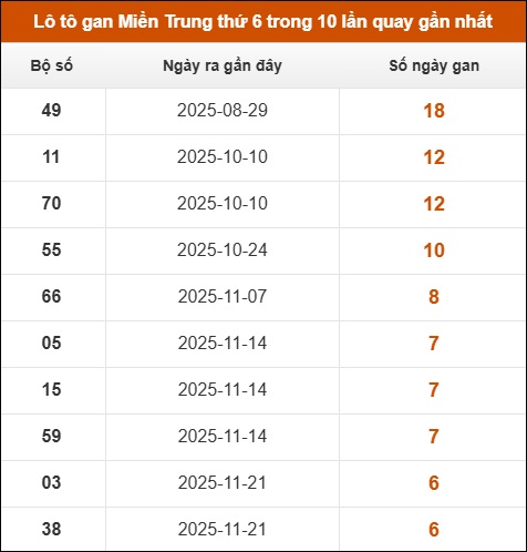 ⚡ Thống kê đuôi GĐB miền Trung lâu ra nhất:
